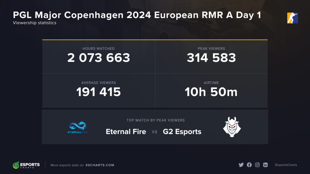 Fans must feel more excited for and invested in these matches, as viewership for the European RMR A set a new record for opening day viewership of RMR events. Day 1 of the RMR event received enough watch time to become the most-watched opening day of any RMR event ever in Counter-Strike, even higher than the RMR B events, which usually receive higher viewership than the A tournament.